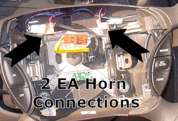 Disconnect the spade connectors that go to the horn switches.There is one on each side at the top.