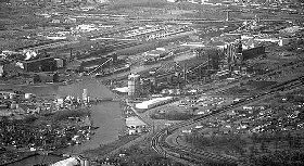 In 1917 Henry began construction of the world's largest industrial complex along the banks of the Rouge River in Dearborn, Michigan. This massive Rouge Plant would include all the elements needed for automobile production: a steel mill, glass factory, and automobile assembly line. Iron ore and coal were brought in on Great Lakes steamers and by rail. Rolling mills, forges, and assembly shops transformed the steel into springs, axles, and car bodies. Foundries converted iron into engine blocks and cylinder heads.
